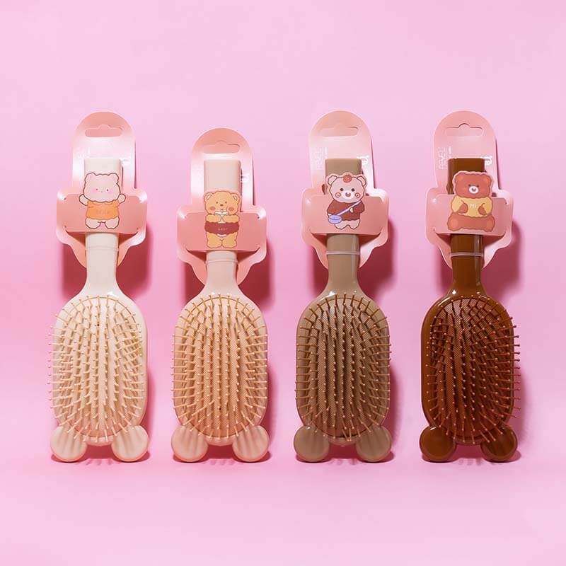 cepillo ovalado de colores tierra, con orejas de osito