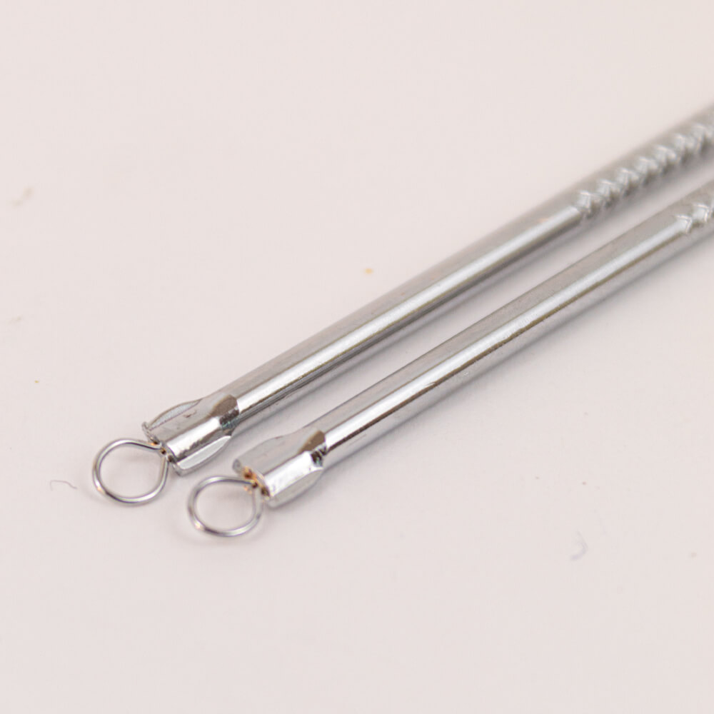 Extractor removedor de espinillas para acné y granos. herramienta de cuidado facial hecha en acero inoxidable.