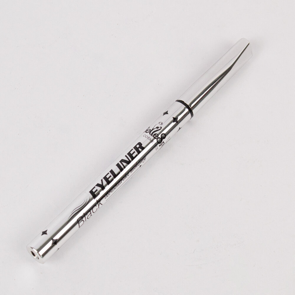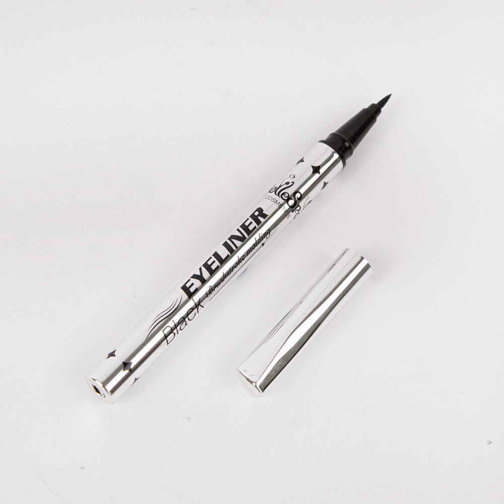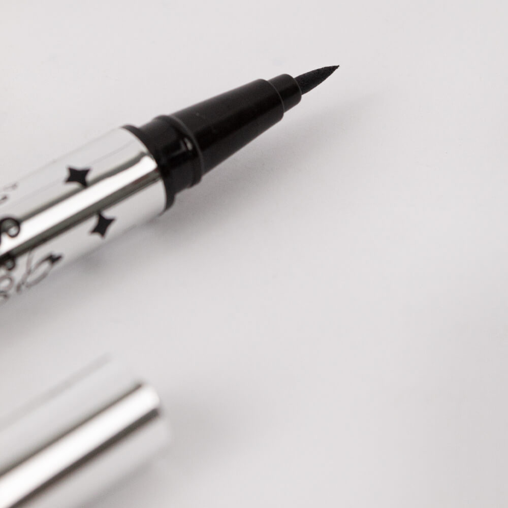 Delineador de ojos líquido negro con aplicador de punta fina.
