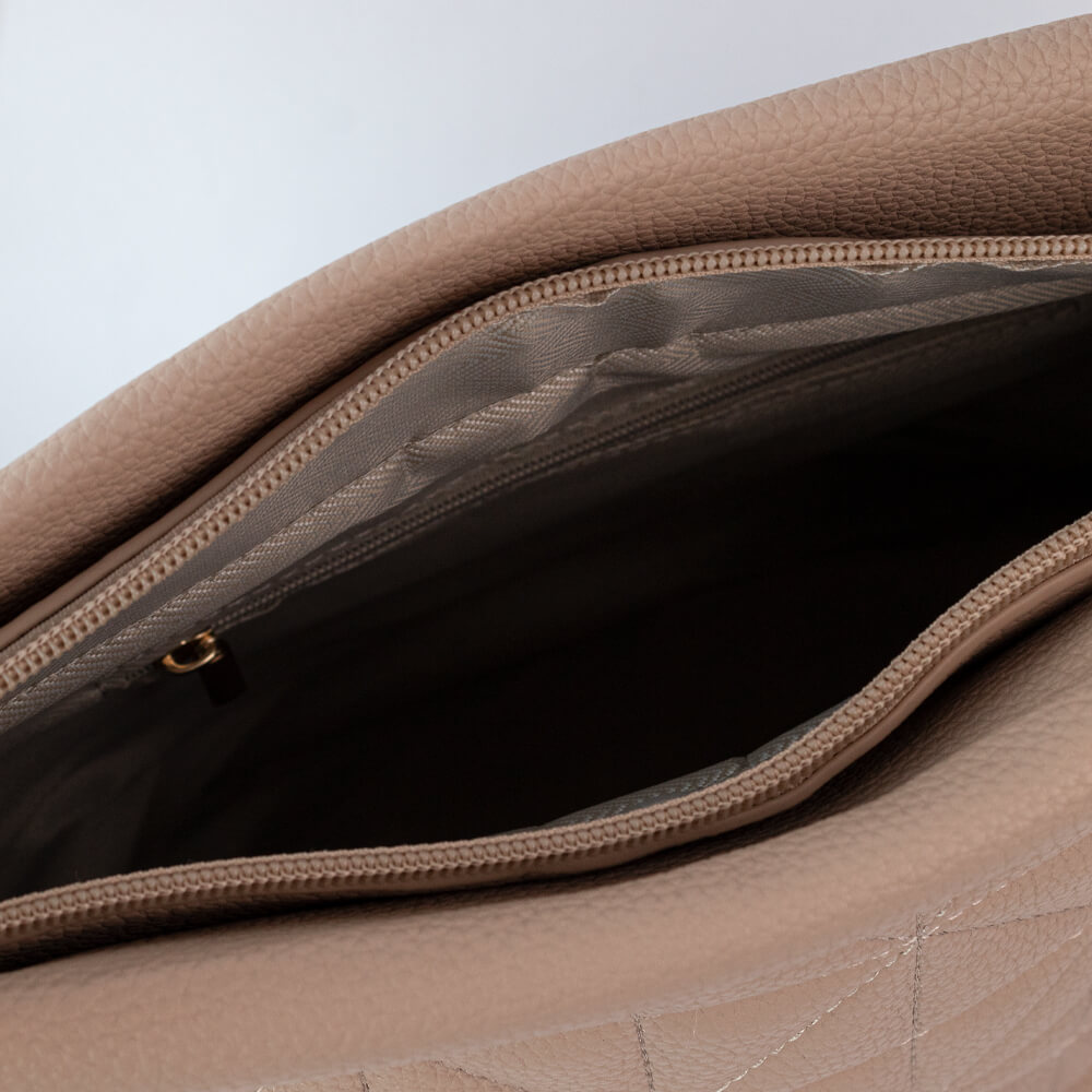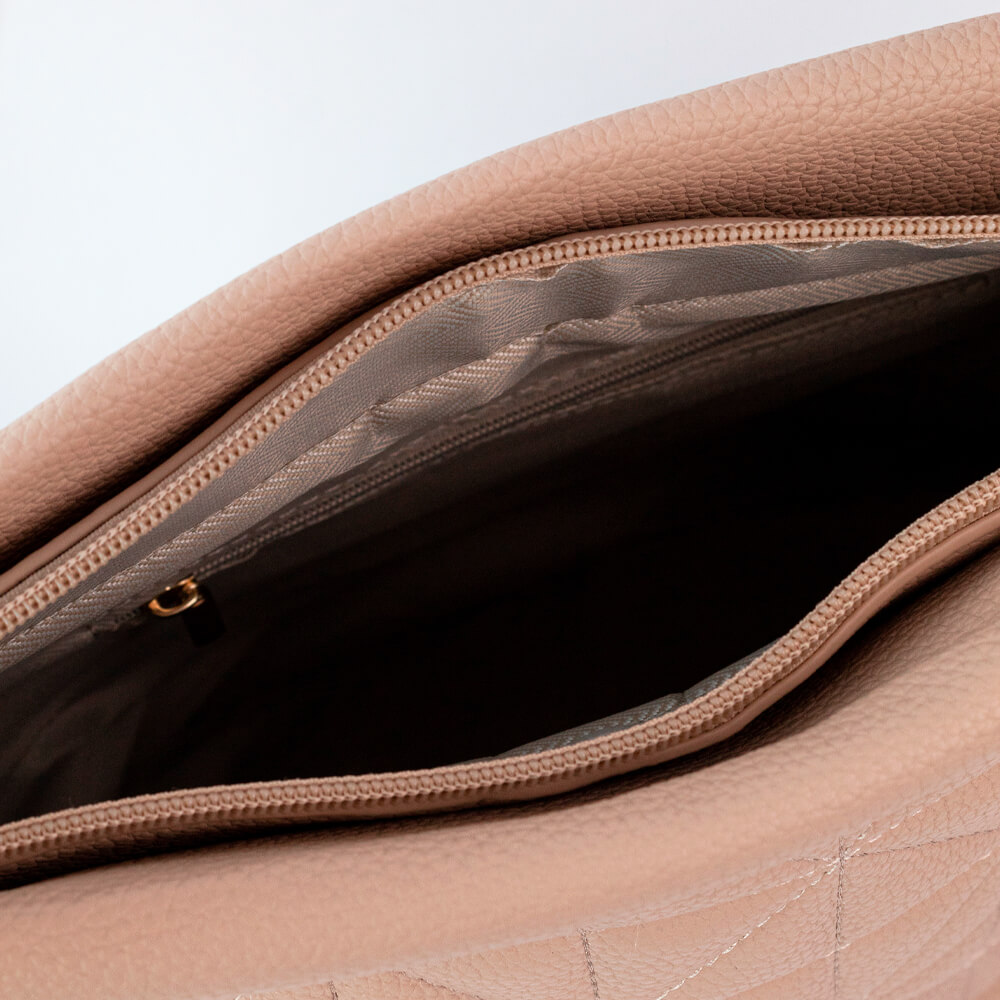 Morral elaborada en fina cuerina de acabado liso suave al tacto.