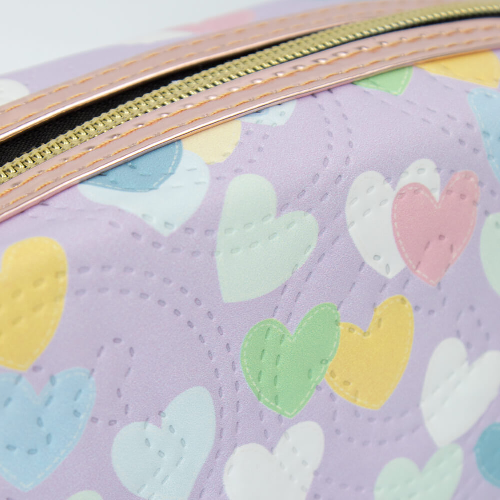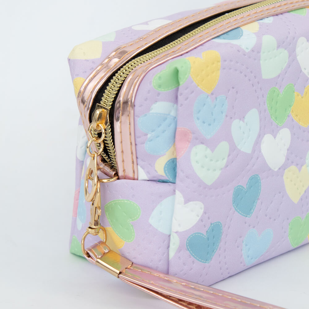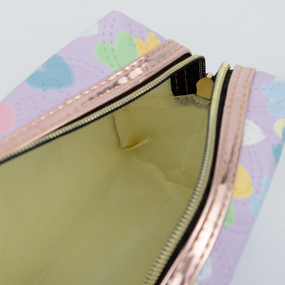 Porta cosméticos con estampado, y cierre de cremallera con tira cierres