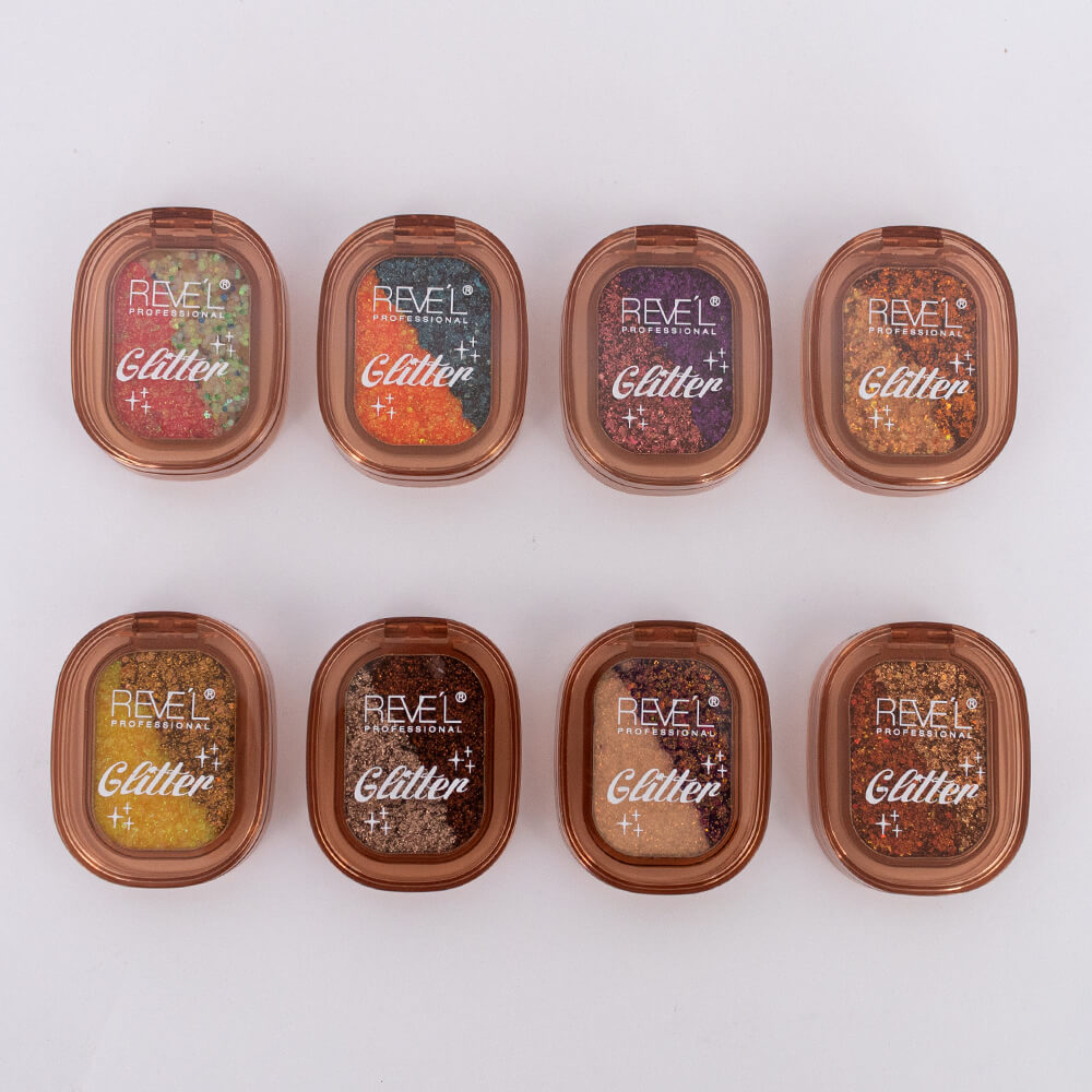 Paleta de glitter prensado o sombras escarchadas para un maquillaje único y reluciente